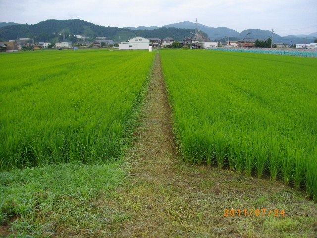 カメムシなどの田んぼの害虫予防のため、今年の夏は4〜5回 田んぼの畦の草刈をしています。 |