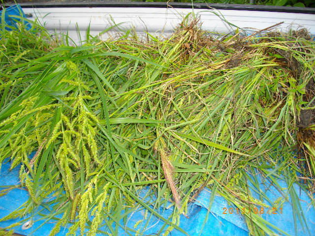 | ↑ 軽トラに積まれた田んぼのヒエ。 [2011年8月21日撮影] |