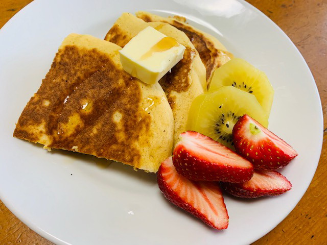 朝パンケーキだと子供が喜びます。