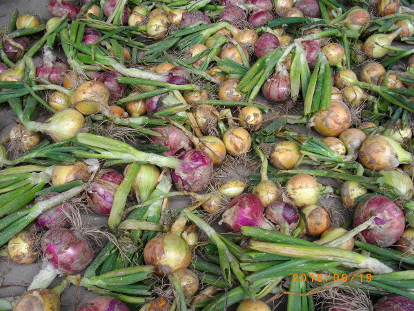 | 平成22年6月 三田村農園の畑の野菜たちも順調に育っています。 ↓ 奥の方がキューリ。 キューリはもう少しかかりそう! ↓ レタス 食べごろです! 既に食卓に出ています。 ↓ ジャガイモ・・・白い花が咲いてきました。 収穫には、もう少しかかりそう。 ↓ タマネギ(収穫前) ↓ タマネギ(収穫しました!) ↓ ニンニクも収穫! 新タマネギ(赤タマネギ)はスライスしてサラダに。 この時期の新タマネギは甘みがあり、美味しいです。 三田村農園/三田村淳一 |
