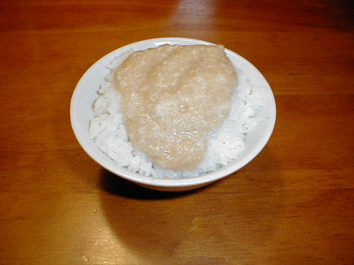 | 写真1:三田村農園の自然薯。 掘る時にちょっと失敗し、途中で折ってしまいました。 でも、自分達で食べるだけだから、良しとしよう! このトロロ芋は、スーパーで販売されている”長芋”より粘りが強く、コクがあります。 それに...もちろん無農薬。 写真2:”自然薯”をおろして、ダイコンおろしとまぜる。 味付けは、醤油だけ。 写真3:炊きたてのご飯の上へ。...トロロご飯の出来上がり! ”自然薯”の食べ方は、色々ありますが、私は ご飯にかけるのが一番好き。 小さい頃から食べてきたものですから、この食べ方がもっともポピュラー! ”自然薯”の味が一番引き立つのは、やはり”炊きたてのご飯”。 ジャーの中で保温されているご飯は避けましょう! 自分で栽培し、自分で収穫し、自分の好きな様に食べる...これが自然だと思います。 今年も自然の恵みに感謝! ■関連写真:キンモクセイの香りと自然薯掘り〜三田村農園の秋(畑仕事)〜 |