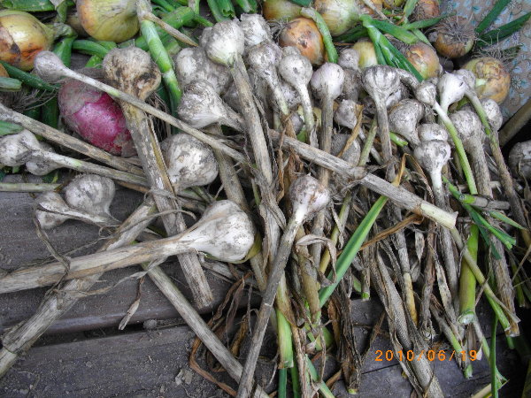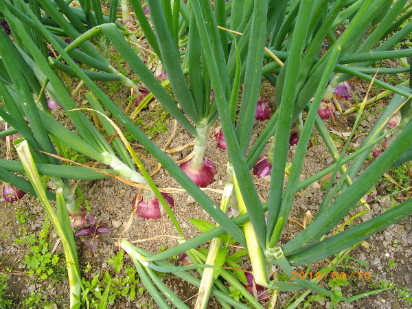 | 平成22年6月 三田村農園の畑の野菜たちも順調に育っています。 ↓ 奥の方がキューリ。 キューリはもう少しかかりそう! ↓ レタス 食べごろです! 既に食卓に出ています。 ↓ ジャガイモ・・・白い花が咲いてきました。 収穫には、もう少しかかりそう。 ↓ タマネギ(収穫前) ↓ タマネギ(収穫しました!) ↓ ニンニクも収穫! 新タマネギ(赤タマネギ)はスライスしてサラダに。 この時期の新タマネギは甘みがあり、美味しいです。 三田村農園/三田村淳一 |