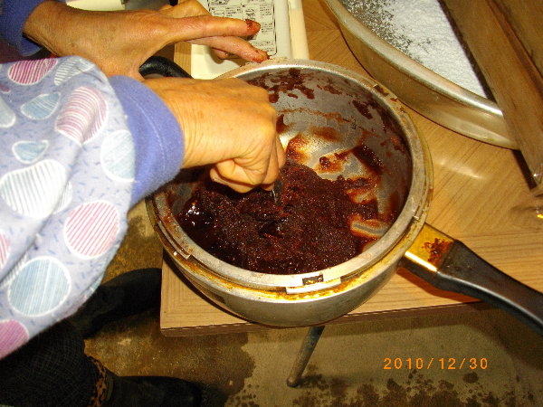 | 母親特製のアンコ これは、ヨモギ餅(草餅)で包みます。 アンコ餅も絶品! 市販のアンコ餅より、はるかに美味いです。 |