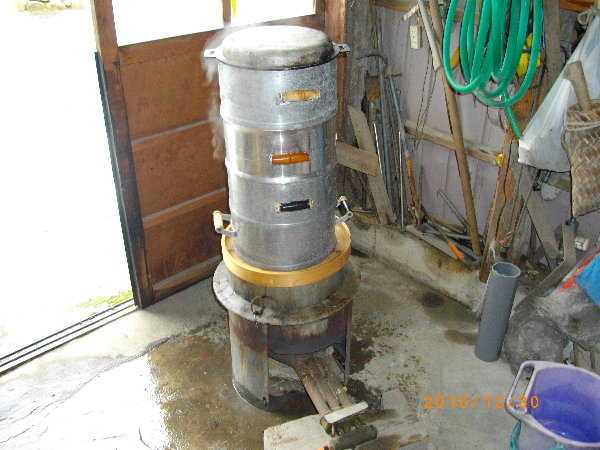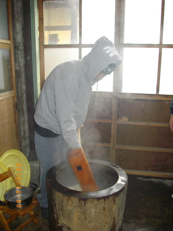 | 年末12月30日は、三田村農園恒例の餅つき。 餅つき機械は2台あるのですが、機械は使いません。 ヤッパ餅は臼と杵でつかないと! という事で、三田村農園の餅つき風景です。 息子も一人前になったようで、餅つきもそこそこ上手に出来るようになりました。 親としたら嬉しいですね。 |